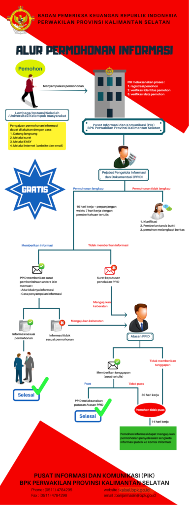 Selamat datang di layanan pengaduan Pusat Informasi dan Komunikasi (PIK) BPK Perwakilan Provinsi Kalimantan Selatan. Untuk melihat alur permohonan informasi publik, silakan klik disini.